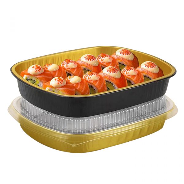 1.65lb oval black&gold foil pan with dome lids